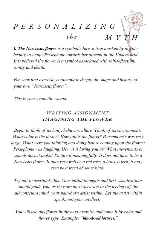 Weekly rituals, writing prompts artful exercises and meditations rooted in mythic reflections.